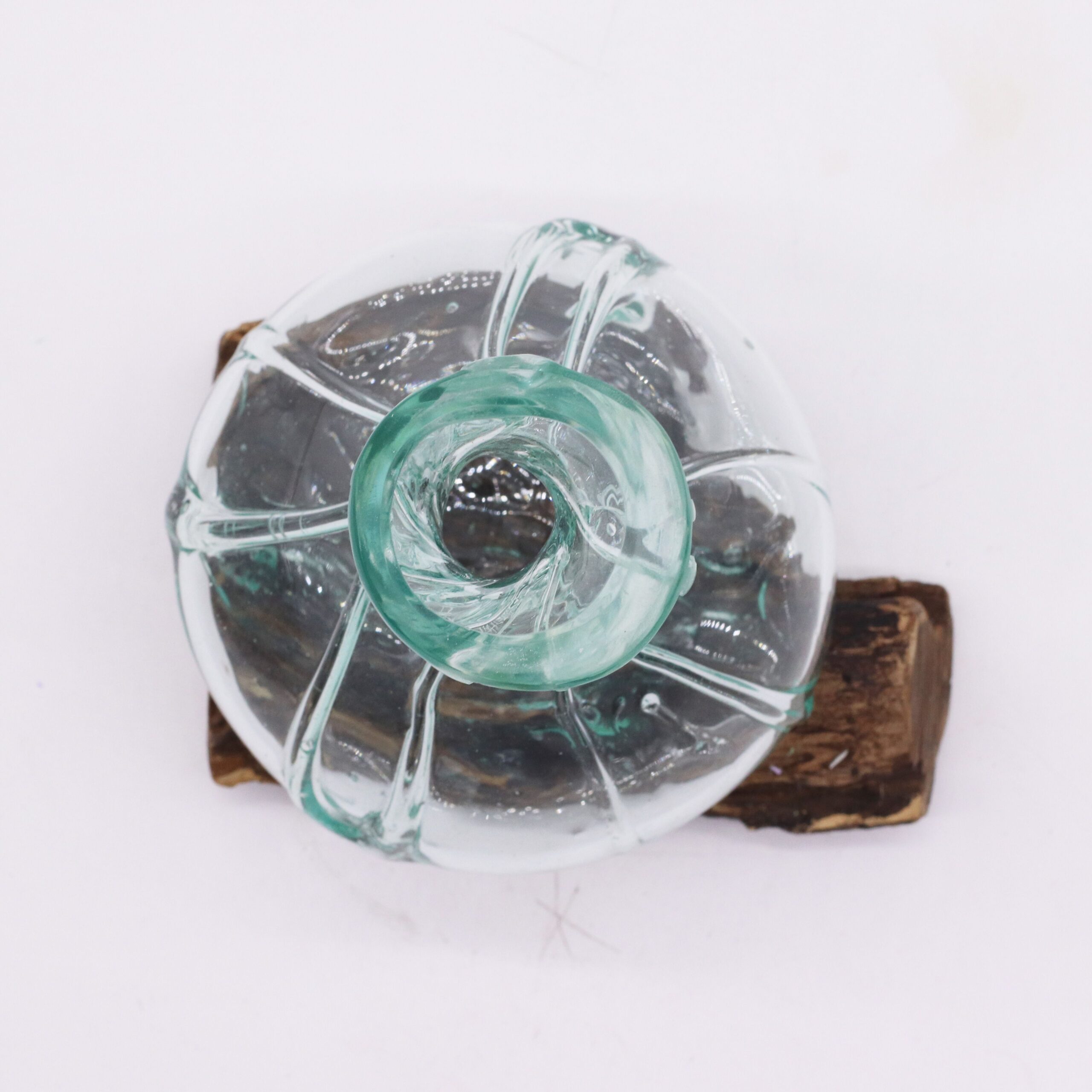 Molted Glass is an example of artistic handicraft.Add a touch of handcrafted elegance to your space with our Molten Glass Fancy Mini Decanter On Wood . This unique piece pairs vibrant, hand-blown clear glass with a beautifully sculpted natural wood base, creating a striking blend of art and nature. Each bowl is individually crafted, ensuring that no two are exactly alike.
