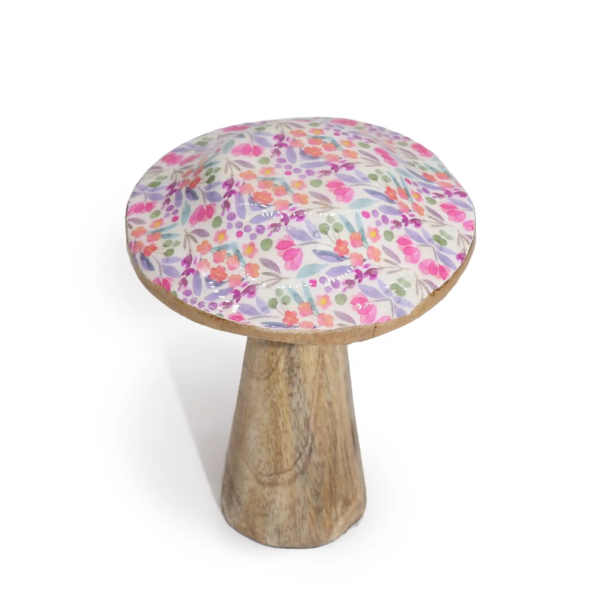 Bring a touch of nature's magic into your home with our adorable Small Wooden Mushroom Decoration. Crafted from sustainable mango wood, this delightful piece features a beautifully painted floral design on its cap, adding a pop of color and personality to any space. Key Features: Natural Materials: Made from eco-friendly mango wood. Hand-Painted Detail: Each mushroom boasts a unique, hand-painted floral design. Charming Accent: Perfect for adding a whimsical touch to shelves, tables, or any surface. Versatile Decor: Complements a variety of décor styles, from rustic to modern. This charming mushroom decoration is more than just a decorative item; it's a small piece of art that will bring joy and a touch of the outdoors into your home. Add a touch of playful elegance with this delightful wooden mushroom gift!