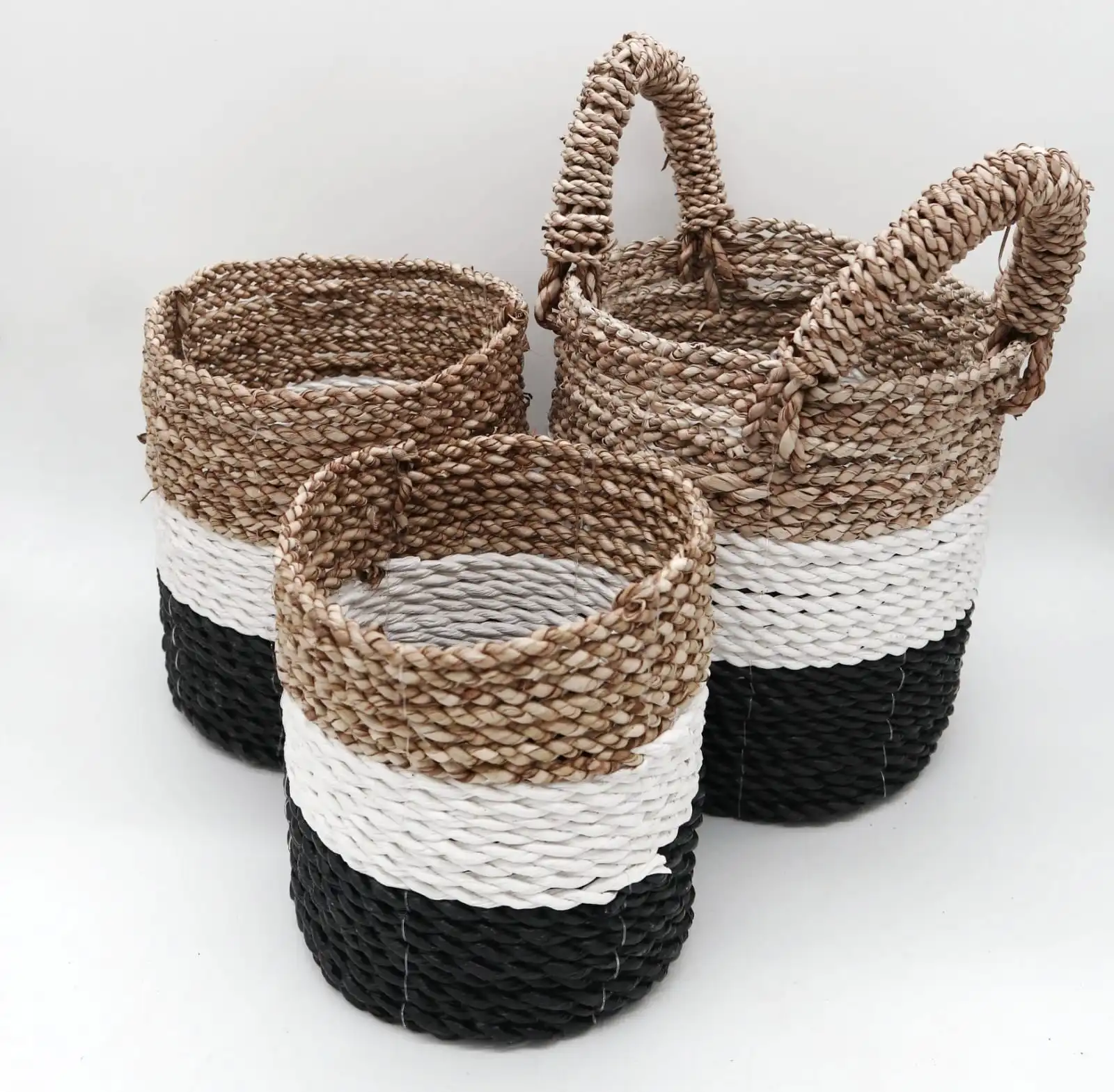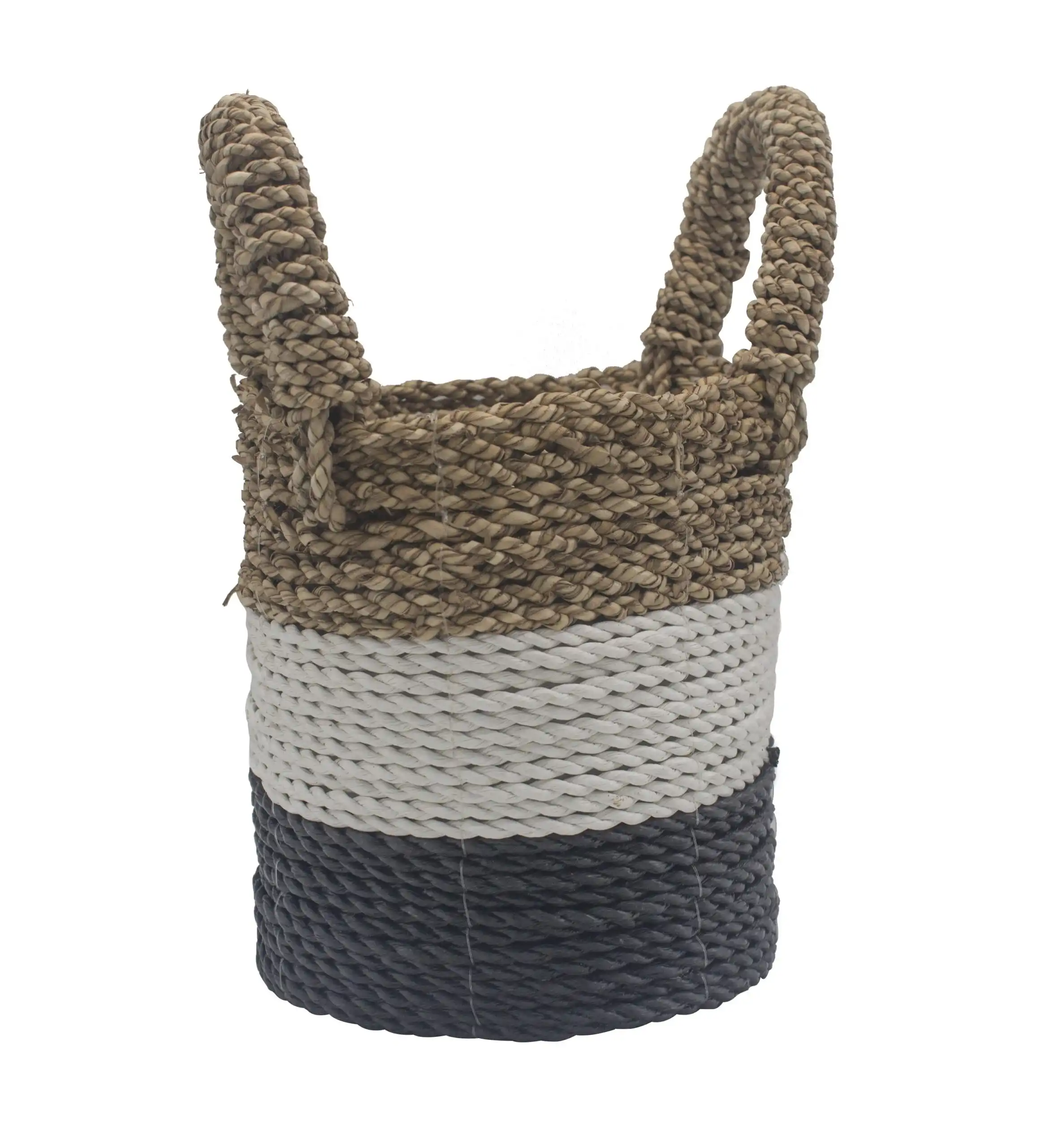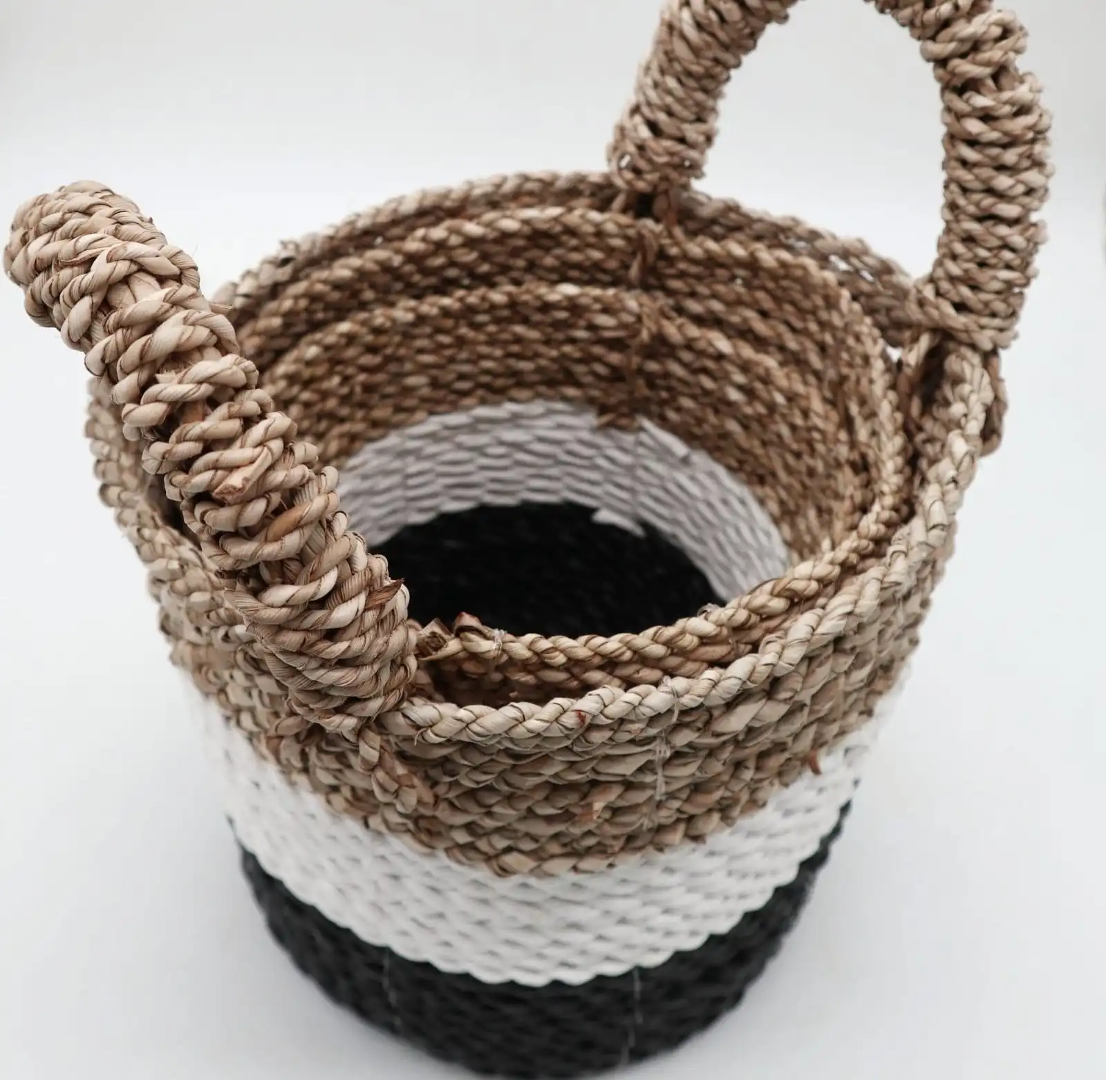 Embrace natural elegance with our Seagrass Basket set in Dark Grey, Natural And White. These beautifully handwoven baskets bring a touch of organic charm to any space, adding a genuine earthy look that complements any décor. Crafted from eco-friendly seagrass, this versatile trio is perfect for displaying your belongings, creating stunning gift baskets, or even as chic flower pots.